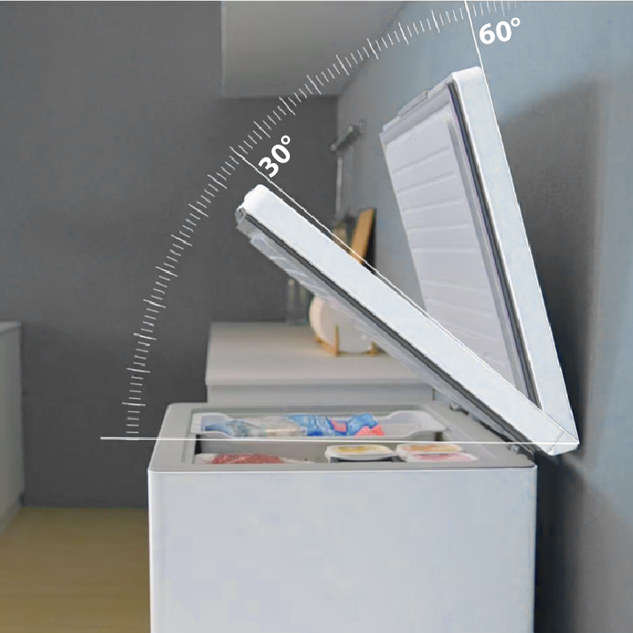 El diseño se centra en la comodidad y la conservación del frío. La puerta multiángulo se mantiene «flotando» sola en un rango de 30°C a 60°C, facilitando la carga y descarga de alimentos. Además, el sistema de cerrado por gravedad asistida asegura que la puerta se cierre automáticamente, sin dejar espacios y garantizando el ahorro energético.